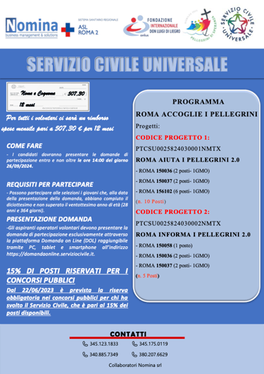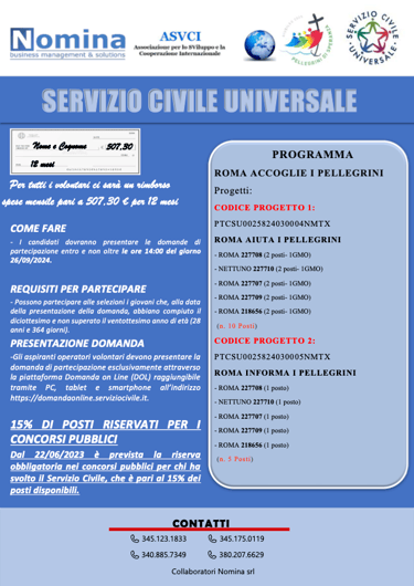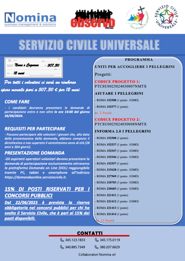 Sintesi dei progetti "Giubileo" del Servizio Civile Universale